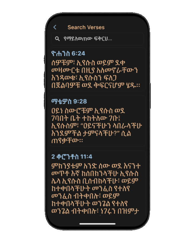 Locate specific passages, explore keywords, and phrases using Kedus Bible's powerful search functionality.